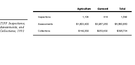 As shown in the figure, the TIPP conducted 1,548 inspections in 1993. The inspections resulted in assessments against employers of $5.6 million, of which $395,734 was collected. The Franchise Tax Board assumed responsibility for TIPP collections beginning in the 1994- 95 fiscal year.