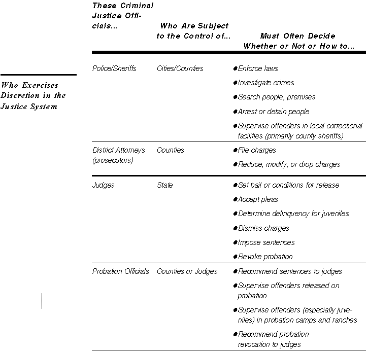 The component parts of California's criminal justice system are, by necessity, closely interrelated (persons arrested by police are prosecuted by district attorneys, decisions as to their fate are made by courts, and punishment and/or treatment is applied by probation and corrections officials).
