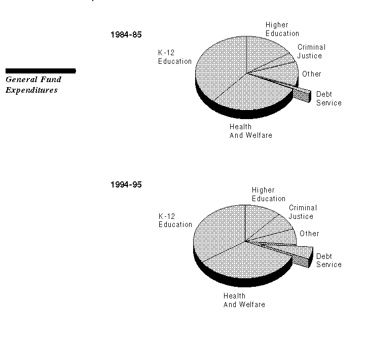 The figures below show that in the last ten years, debt service has increased from 1.5 percent to 5.2 percent of General Fund expenditures.