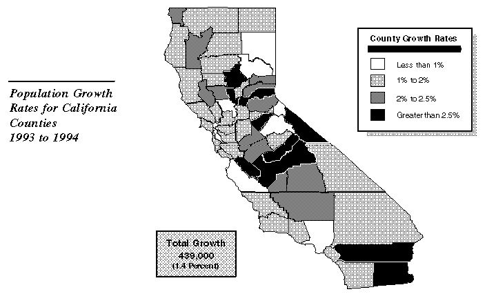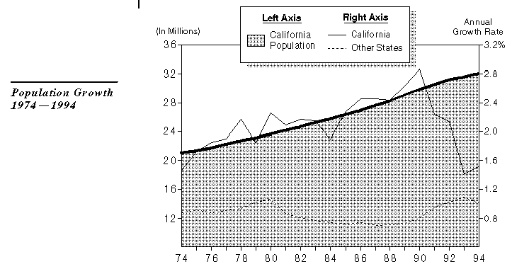 California's average population growth rate was 2.1 percent during this period, or twice that of other states combined.