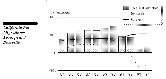 During the latter half of the 1980s when California's population grew very rapidly, net migration to California contributed somewhat more to population growth than the gain from natural increase. Both foreign immigrants and migrants from other states contributed to this growth.