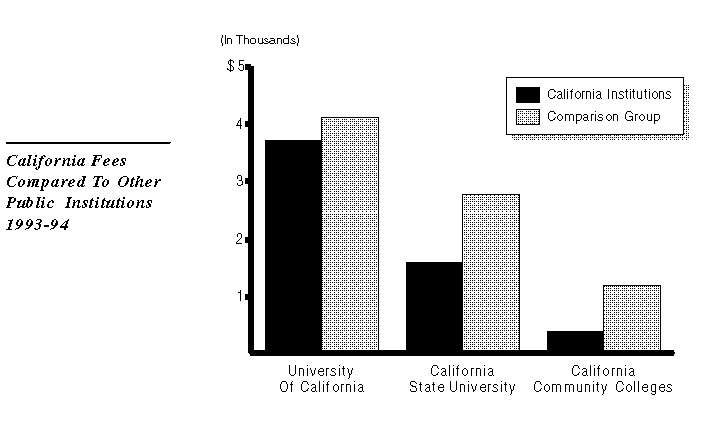 Compared to similar institutions in other states, California's resident undergraduate fees (systemwide and campus-based) in 1993-94 were:
