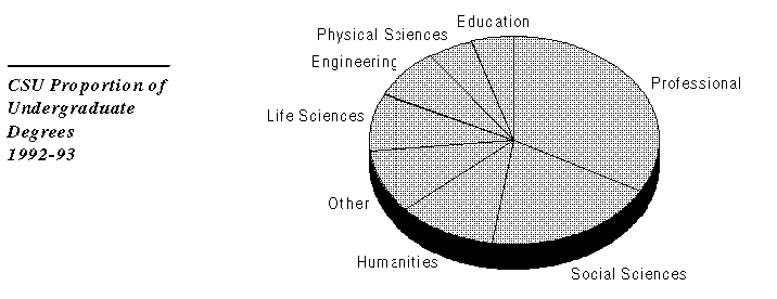 From 1987-88 through 1992-93, the number of undergraduate degrees conferred at the CSU increased by 20 percent. The CSU experienced the same trend as the UC-- the number of social science and humanities degrees grew faster than average, while the number of life science degrees grew slower than average. During this time period, the number of engineering and physical science degrees declined by 11 and 13 percent, respectively.