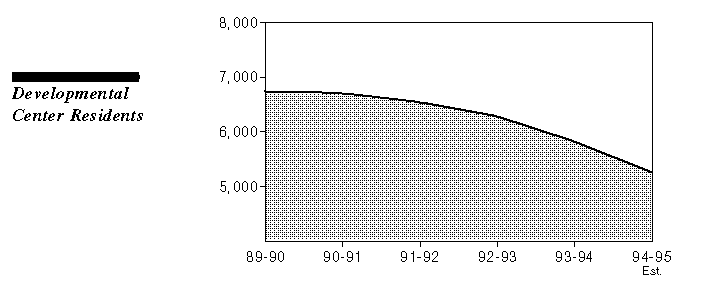 Due primarily to the settlement of the Coffelt v. Developmental Services lawsuit, there has been an increase in the placement of DC residents in the community and a significant decrease in admissions to DCs. The DC population is anticipated to decrease from 6,544 at the end of 1991-92 to an estimated 5,265 residents at the end of 1994-95--a reduction of 20 percent in three years.