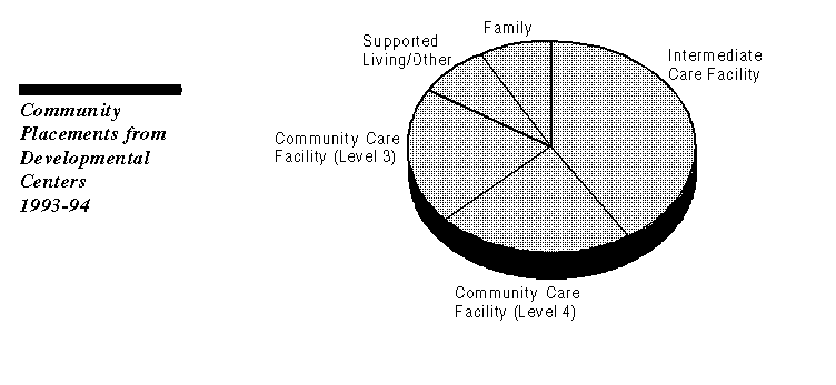 Of the developmental center clients placed in the community in 1993-94, 63 percent were placed either in intermediate care facilities (licensed medical facilities) or in the highest service category ("level 4") of community care facilities. The average cost for a DC resident is about $92,000 per year, while the average cost for a DC client placed in the community is estimated to be approximately $45,000 per year.