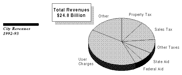 City revenues are generated from a variety of taxes and user charges, with only a small amount of state or federal assistance. Fees-for-service and other user charges (for such things as utility, zoning and planning, and ambulance services) account for over one- third of city revenues statewide. In the aggregate, cities are somewhat more reliant on sales tax revenues than on property tax revenues, although this varies considerably from city to city.