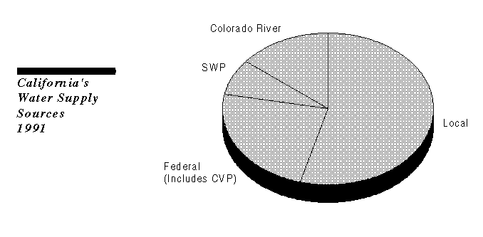 The state's developed water supply comes from a diverse mix of sources. The single largest water source is local sources of ground water and surface water. Other important sources of developed water include the Central Valley Project (CVP), operated by the federal government, and the Colorado River. The State Water Project (SWP) provides about 8 percent of California's developed water supply.