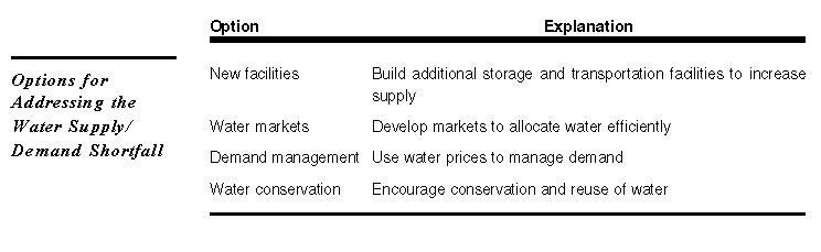 Options for Addressing the Shortfall Between Water Supply and Demand