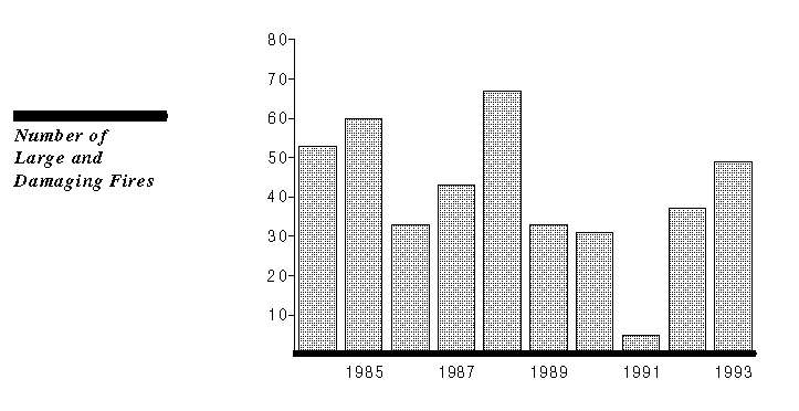 Over the last ten years, the total number of wildfires annually in California has fluctuated between about 7,000 and 8,000. The number of those fires which have turned into large and damaging fires--which CDFFP defines generally as fires over 300 acres--has tended to remain steady. The total acreage burned in those fires has also remained relatively steady.