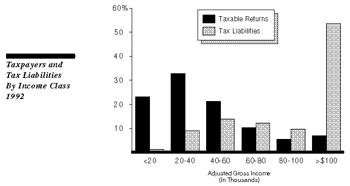 In 1992, the top 10 percent of taxpayers paid nearly 60 percent of all tax liabilities, and the top 1 percent of taxpayers paid almost 30 percent of all liabilities.