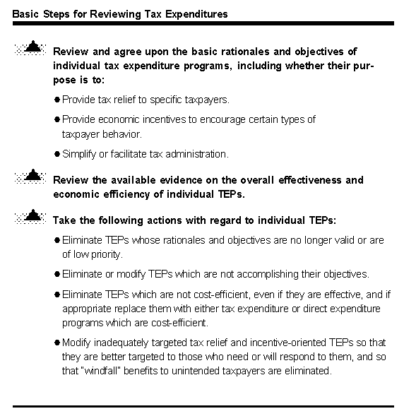 Tax expenditure programs (TEPs) are the various tax exclusions, exemptions, preferential tax rates, credits, and deferrals which reduce the amount of revenues collected from the state's "basic" tax structure.