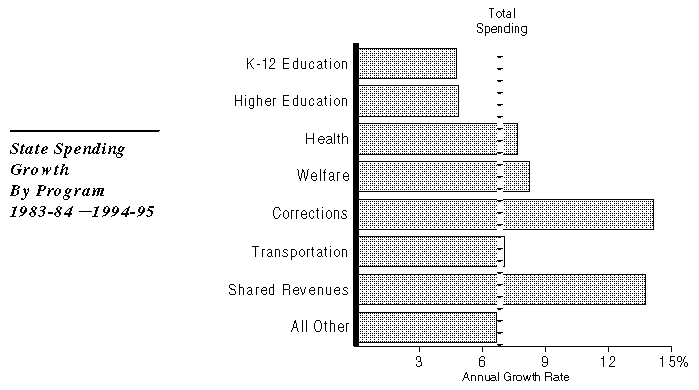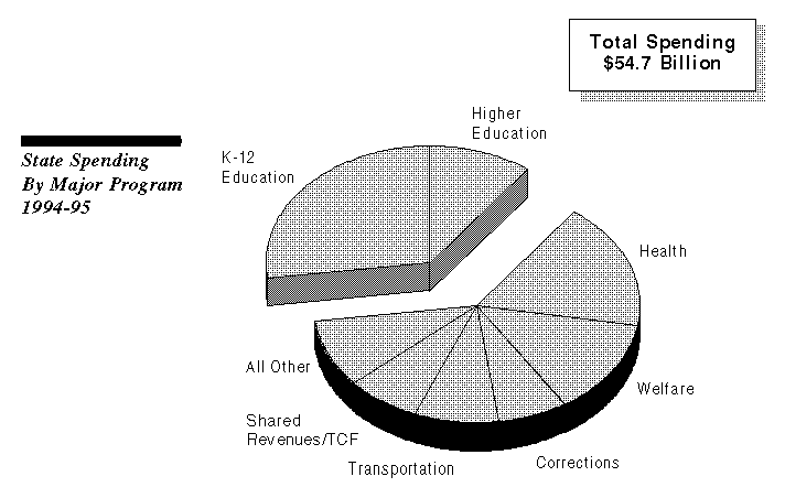 Four major program areas--education, health and welfare, corrections, and transportation--account for 83 percent of total state spending.