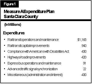 In November 1992, Santa Clara County voters approved by a 54.1 percent majority "Measure A," a one-half cent sales tax for transportation purposes. Measure A would have raised about $3.5 billion over 20 years, with the money used primarily to fund improvements and operation of the rail system in the county, as shown in Figure 1. The Supreme Court ruled that Santa Clara's tax was not valid because this tax did not receive two-thirds voter approval as required by Proposition 62.