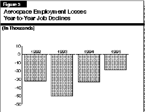 The weakest industry sector has been finance, insurance, and real estate, which continues to undergo major consolidations and restructurings. Job losses also occurred in aerospace industries, however at a much more subdued rate than in past years, as shown in Figure 3. These more modest losses imply that defense-related reductions are becoming less of a drag on overall California economic growth. This is particularly evident in the more positive job performances in Los Angeles, Orange, and Santa Clara Counties, which had been harshly affected by cutbacks in defense contract spending in previous years.