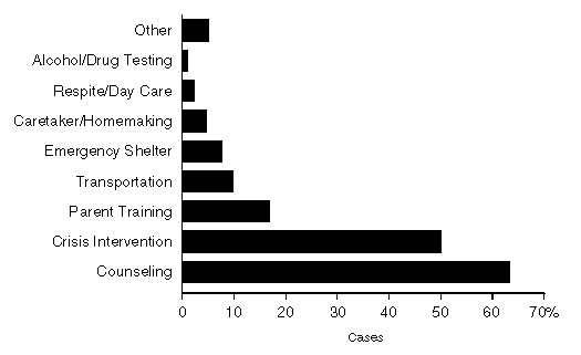 were counseling (63 percent of cases) and crisis intervention (50 percent