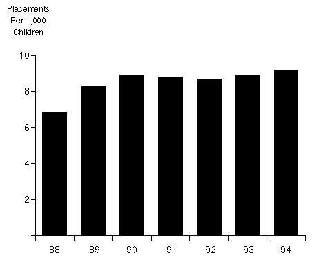 - In 1993, California's foster care placement rate was 10 per 1,000