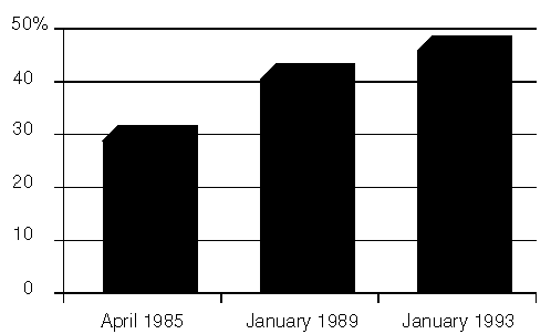the years, from 88 percent in 1984 to 86 percent in 1995.
