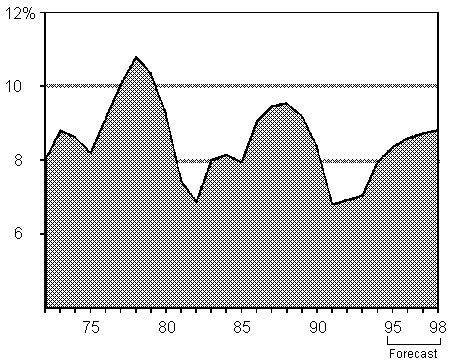 In 1996, marginal tax rates will range from 1 to 9.3 percent.