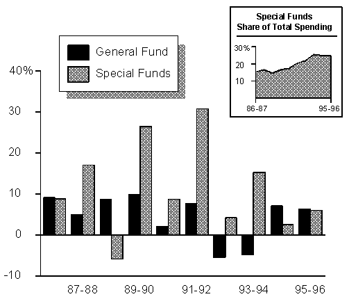 Prior to 1991-92, growth in special fund spending primarily reflected new earmarked funds (such as gasoline and cigarette tax increases) and the creation of new programs (such as fee-based environmental and recycling programs).