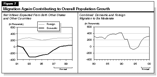 Net Migration Rebounding. Figure 7 shows our forecast for net migration and its two major