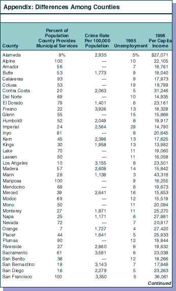 Viewed as a group, three factors--summarized in Figure 9--explain most of the variation in revenues among counties.