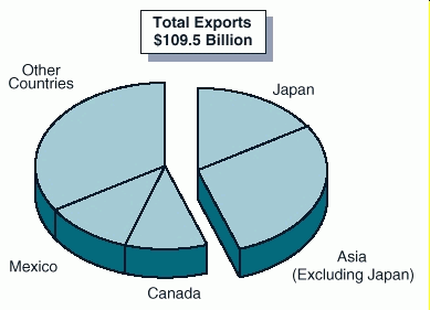- Problems in Asia are of particular importance to California since nearly one-half of California's exports are to Japan and other Asian countries (primarily