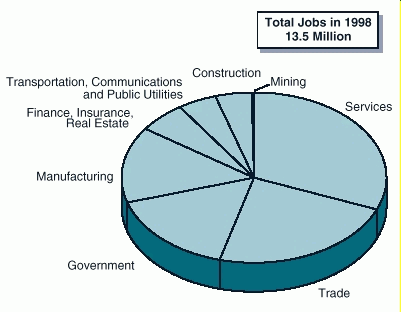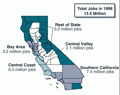 By far the largest region is the six-county area of Southern California, which accounts for well over one-half of the jobs in the state.