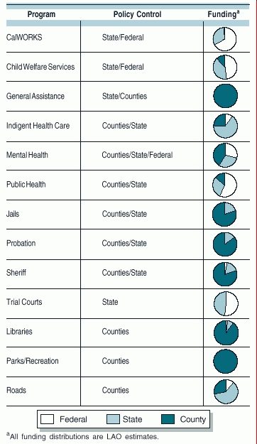 | 1991 | Realignment. Shifted authority from the state to counties, and increased counties' share of costs, for many health and social services programs. Provided new revenue sources to counties to offset increased county costs. |