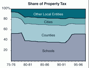 | 1992 and 1993 | Ongoing Revenue Shifts. State shifted property taxes from counties and other local entities to schools in order to reduce state education costs. Subsequently, these reduced county revenues have been substantially offset in the aggregate by various mechanisms, including funding for public safety (Proposition 172 sales tax revenues, COPS funding, and changes to trial court funding) and general assistance mandate relief. |