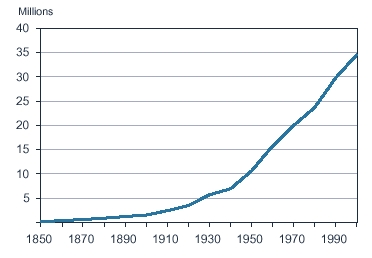 It took about 100 years to reach the 10 million mark, but since then California has been adding 10 million people every 20 years.