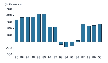 exceeded 300,000 annually during the recession, but modest inflows now exist.