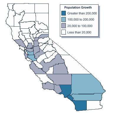 most people. For example, Los Angeles, Orange, and San Diego Counties accounted for 43 percent of statewide growth since 1995.