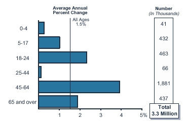 Californians' average age is increasing, as baby boomers enter their 50s and continue to cause rapid growth of the 45-64 age group.