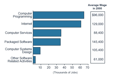 These industries, which include businesses involved in development of computer systems, software, and the Internet, have increased from less than 130,000