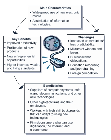 California is a primary beneficiary of the "new economy," given its emphasis on high-tech activities.
