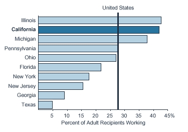 - Among the ten largest states, California's percentage of adult welfare recipients in unsubsidized employment is second only to that of Illinois.