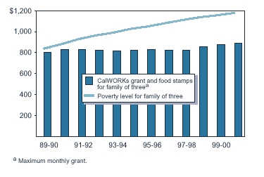 While CalWORKs Grant Is Significantly Below Poverty Level