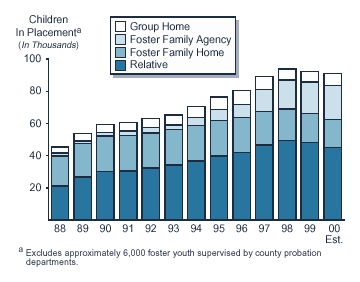 - Since 1988, foster family agency placements increased more than twenty-fold while less costly non-relative foster family home placements declined slightly.