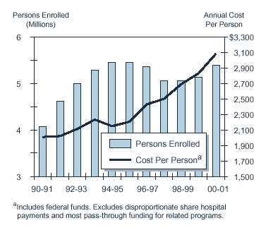 - The annual cost increase per person for Medi-Cal benefits has averaged 6.9�percent since 1995-96 due to provider rate increases, increased spending on
