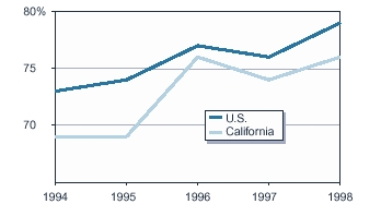 - In 1998 (the most recent data available), the U.S. and California experienced historically high rates of preschool immunizations. However, these rates remain