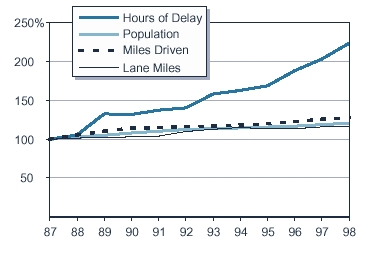 - Due to this imbalance between demand for driving and supply of freeway capacity, the number of hours that Californians spent delayed in traffic on the