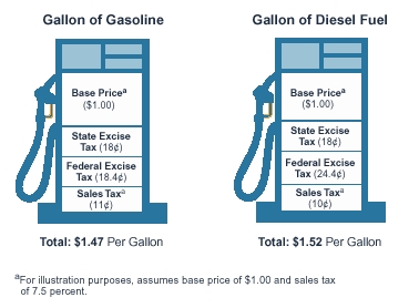 18.4 cents in federal tax for each gallon of gasoline and 24.4 cents for each gallon of diesel fuel.