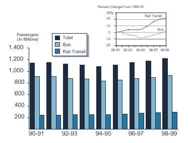grew by about 2 percent from 1990-91 levels, but it was not until 1998-99 that bus ridership exceeded the 1990-91 total.