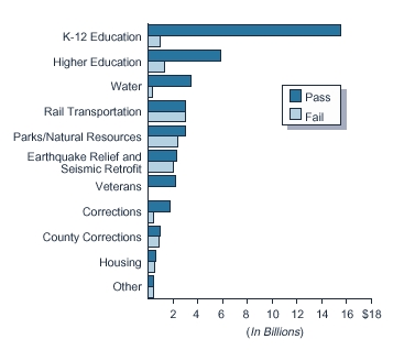 - About 40 percent of all approved bonds ($15.5 billion) have been for K-12 school facilities.