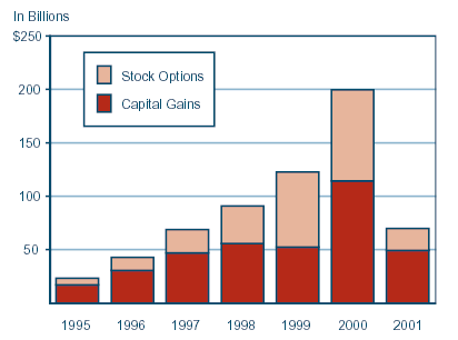 Capital Gains and Stock-Option Income Tumbled in 2001