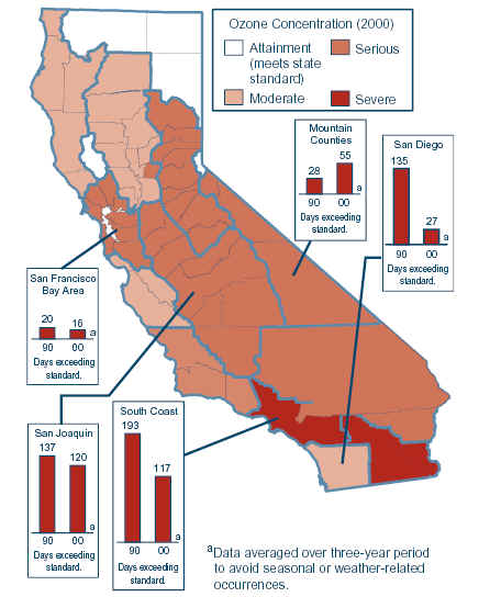 concentrations (a key component of smog) have decreased in most air basins