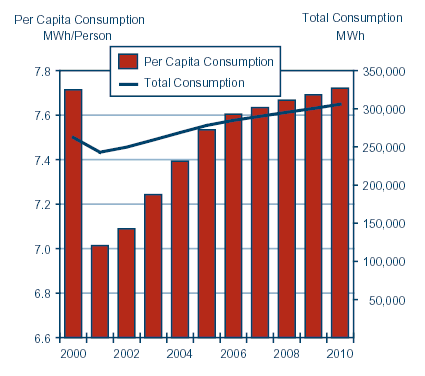 Per capita consumption of electricity is projected to increase, but