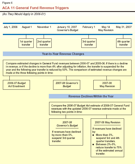 In summary, Figure 7 suggests that ACA 11 would likely result in General Fund revenue transfers to the Infrastructure Fund. It also shows that the various triggers and adjustments in ACA 11 do work to protect other General Fund programs by reducing transfers to the Infrastructure Fund when General Fund revenues slow or decline.