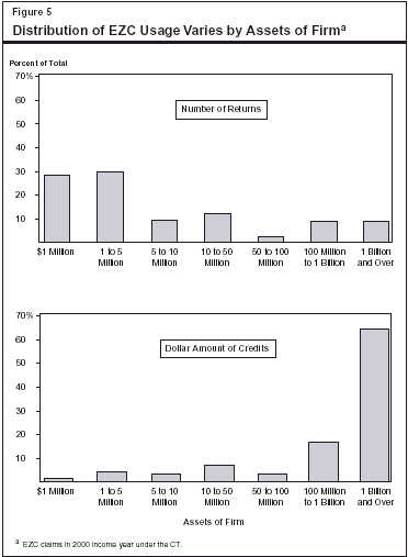 The use of the EZC by CT taxpayers is broadly distributed by industry, as shown in Figure 4 (on following page). The largest dollar amount of credits is concentrated in the heavy industry sector, which accounts for about 25 percent of the total dollar value of all credits. Light and heavy industry together constitute almost one-half of the total amount of credits used. The trade sector represents an additional 23 percent share.