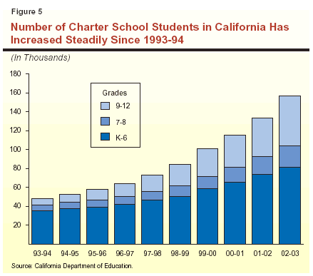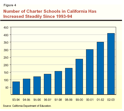 In 1992, California became the second state in the country to enact legislation allowing for the creation of charter schools. The first charter schools in California opened their doors for the 1993-94 school year and, during the past ten years, charter schools have grown in number and steadily increased enrollment. To assess how these schools are using their resources in educating students, the state recently funded a two-year evaluationthe results of which were released on June 30, 2003. The evaluation deemed charter schools cost-effectiveachieving academic results similar to those of traditional public schools despite receiving less state funding.